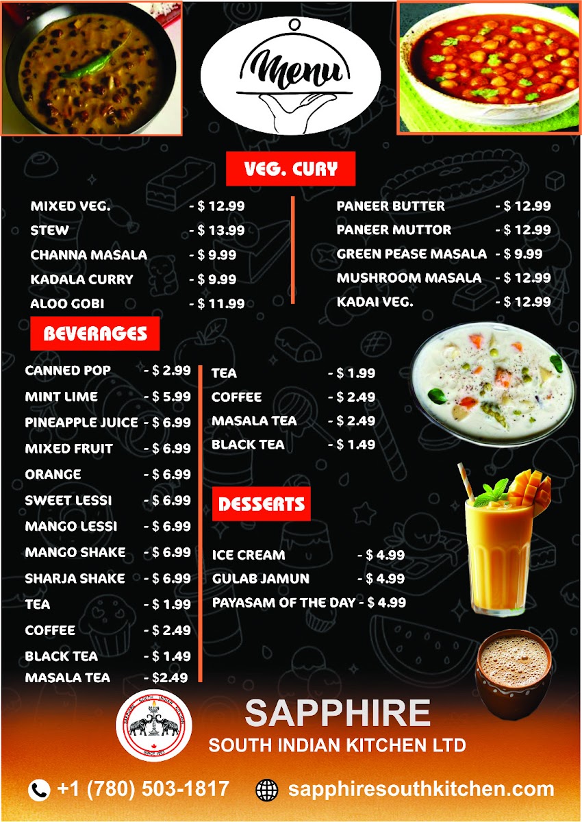 Discover an authentic taste of South India at Sapphire South Indian Kitchen, located conveniently at 10626 Ellerslie Rd SW, Edmonton, AB T6W 0C3. This charming Indian restaurant invites food lovers to indulge in an array of rich, vibrant flavors that reflect the heart and soul of South Indian cuisine.